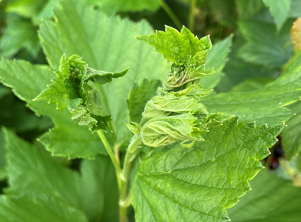 Solbærgallmyggskade (Foto: Nina Trandem, NIBIO)
